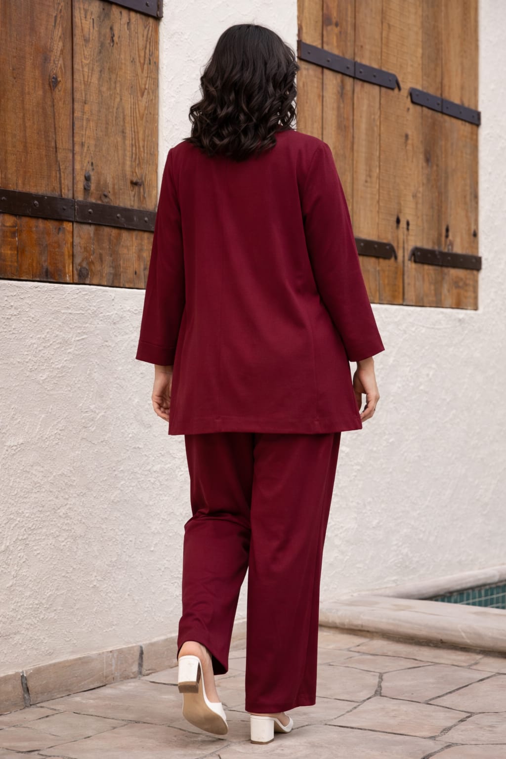 White Top & Maroon Floral Printed Design Co-Ord Set